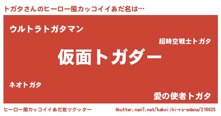 トガタさんのヒーロー風カッコイイあだ名をツクッター!