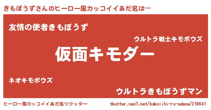 | 男性向けラノベタイトル風あだ名 | 『きもぼうずに滅ぼされるだけの簡単なお仕事です』 |