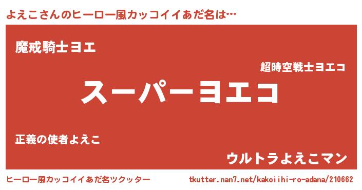 | 男性向けラノベタイトル風あだ名 | 『ヨエコアートオンライン』 |