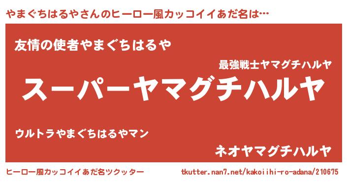 | 胡散臭い通販商品みたいなあだ名 | 『必ず成功するブレスレット…その名も「やまぐちはるや」』 |