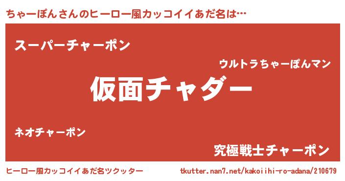 | 意味不明あだ名 | 『住所不定無職ちゃーぽん(14歳)』 |
