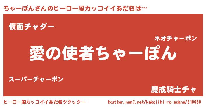 | 女子向けラノベタイトル風あだ名 | 『ちゃーぽん恋絵巻』 |