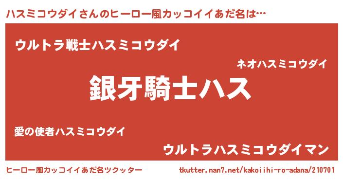 | ポケモン風あだ名 | 『ヒハスミコウダイ』『ハスセウス』 |