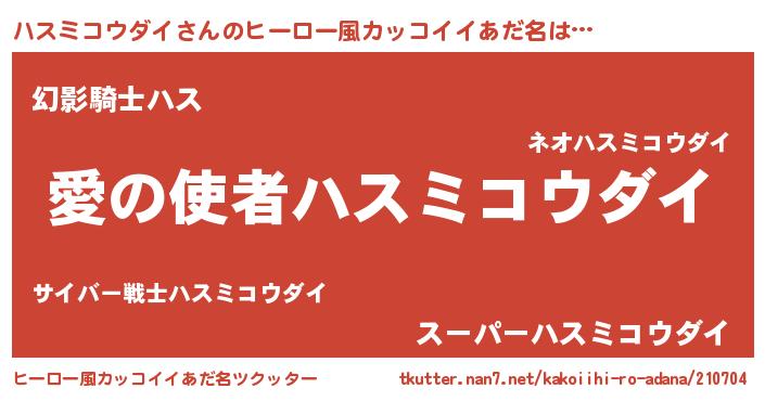 | 男性向けラノベタイトル風あだ名 | 『ハスミコウダイに滅ぼされるだけの簡単なお仕事です』 |