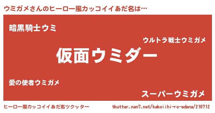| 意味不明あだ名 | 『住所不定無職ウミガメ(98歳)』 |