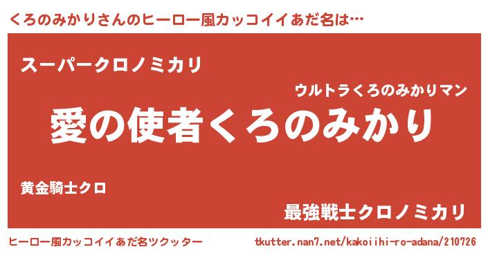 | 男性向けラノベタイトル風あだ名 | 『冴えないくろのみかりの育てかた』 |