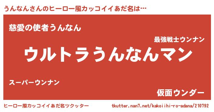 | 女子向けラノベタイトル風あだ名 | 『うんなん伯爵の花嫁』『闇のうんなん』 |