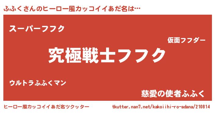 | 男性向けラノベタイトル風あだ名 | 『Re:ふふくから始める異世界生活』 |