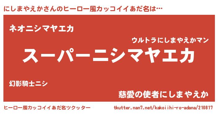 | ヘコむあだ名 | 『にしっふぃ~』『にしまやえか(笑)』 |
