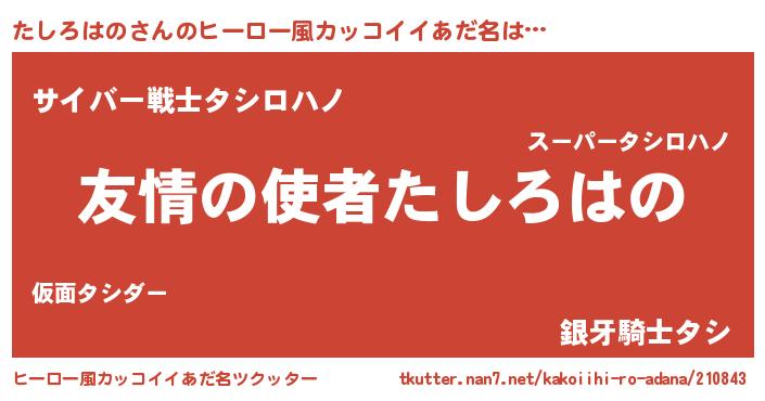 | 男性向けラノベタイトル風あだ名 | 『転生したらたしろはのだった件』 |