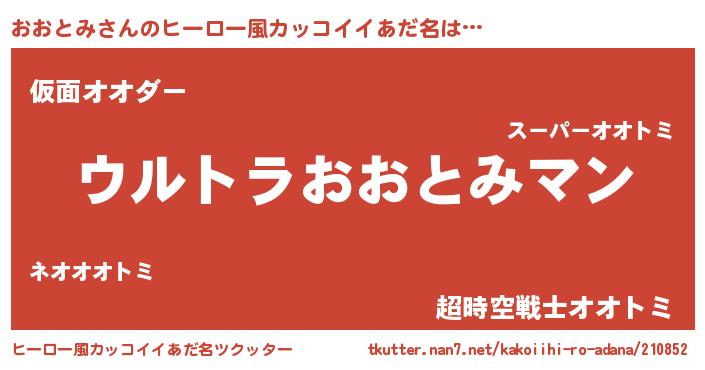 | 男性向けラノベタイトル風あだ名 | 『うちの娘の為ならば、俺はもしかしたらおおとみも倒せるかもしれない。』 |