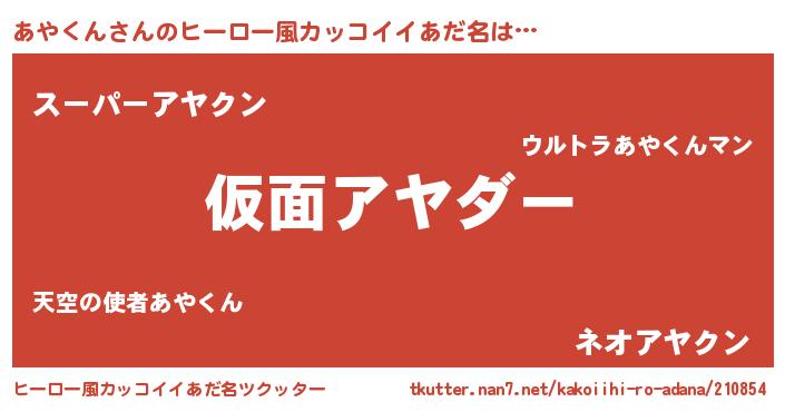 | 男性向けラノベタイトル風あだ名 | 『魔弾の王とあやくん』『あやくんの憂鬱』 |