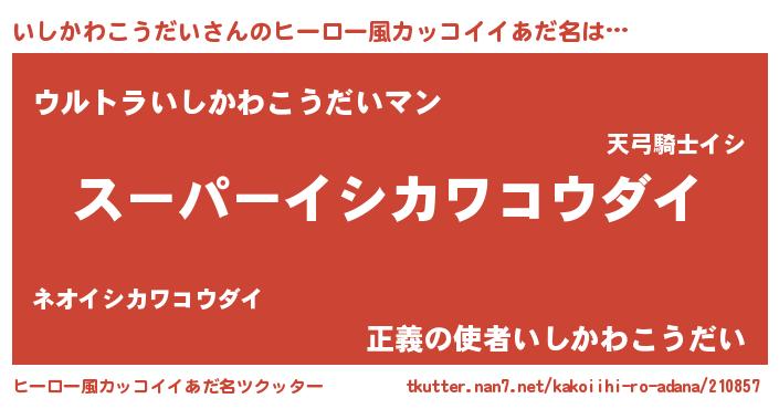 | 胡散臭い通販商品みたいなあだ名 | 『億万長者になれる霊験あらたかなお札…その名も「いしかわこうだい」』 |