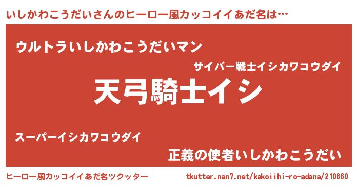 | 男性向けラノベタイトル風あだ名 | 『いしかわこうだいの嫁は女の子じゃないと思った?』 |