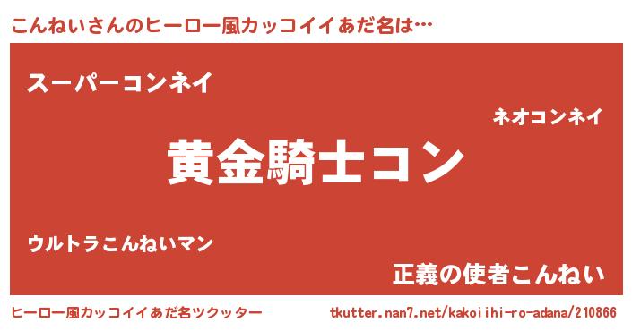 | 胡散臭い通販商品みたいなあだ名 | 『信頼と実績のサプリメント…その名も「こんねい」』 |