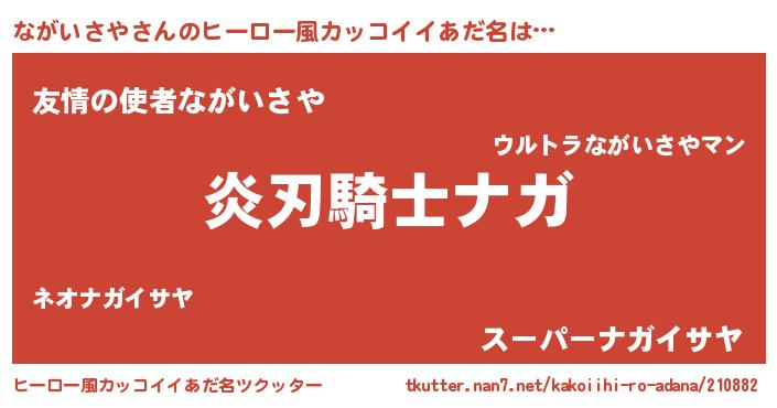 | 男性向けラノベタイトル風あだ名 | 『ながいさやの嫁は女の子じゃないと思った?』 |