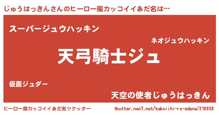 | 男性向けラノベタイトル風あだ名 | 『じゅうはっきん~年齢イコール彼女いない歴の魔法使い~』 |
