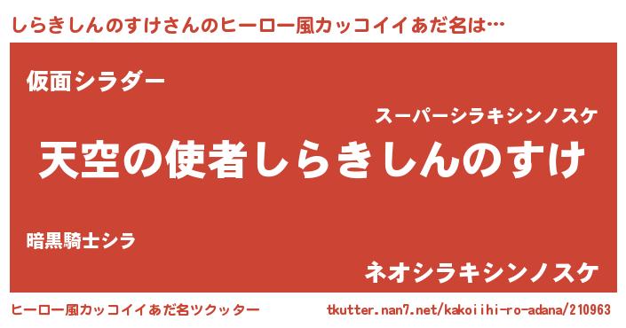 | 男性向けラノベタイトル風あだ名 | 『ノーゲーム・ノーシラキシンノスケ』 |