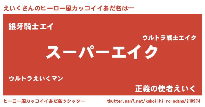 | 男性向けラノベタイトル風あだ名 | 『緋弾のエイク』『えいくの憂鬱』 |
