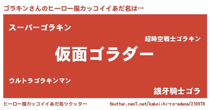 | 料理風あだ名 | 『ゴラキンのカルパッチョ風』 |