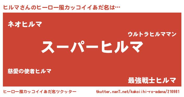 | 男性向けラノベタイトル風あだ名 | 『ヒルマの憂鬱』 |