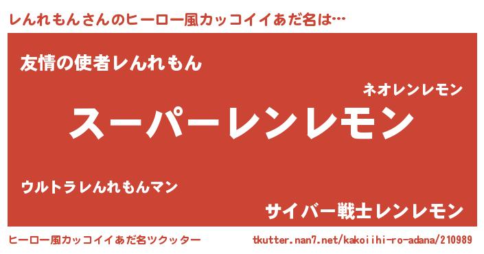 | 意味不明あだ名 | 『ペロリンレんれもん』『自称レんれもん』 |