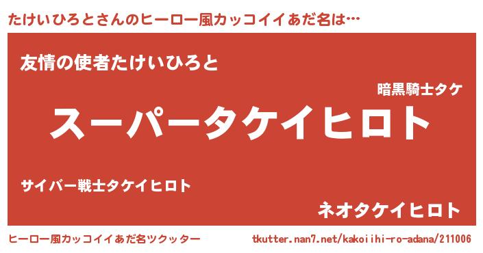 | ヘコむあだ名 | 『たけにゅー』『たけいひろと(苦笑)』 |