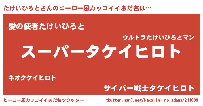 | 男性向けラノベタイトル風あだ名 | 『たけいひろとの憂鬱』 |