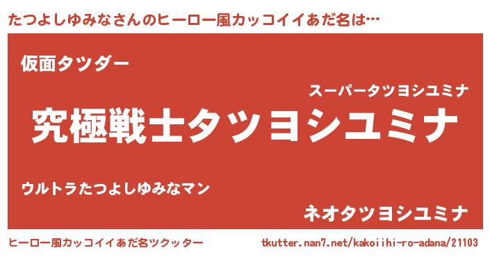 | ヘコむあだ名 | 『たつよしゆみな(小並感)』『たつもー』 |