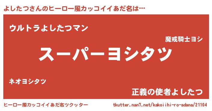 | ファンタジー風あだ名 | 『ヨシフェル』『エターナルヨシタツー』 |