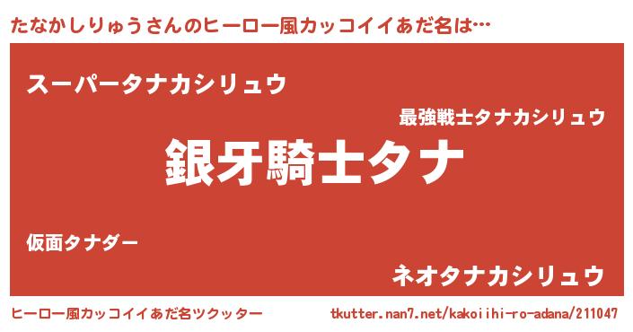 | 男性向けラノベタイトル風あだ名 | 『ダンジョンにたなかしりゅうを求めるのは間違っているだろうか』 |