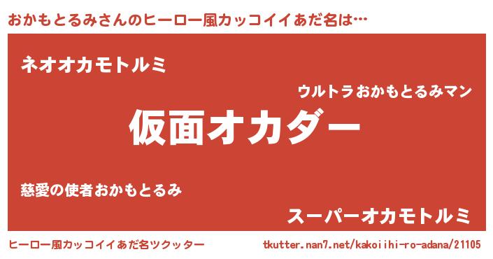 | 男性向けラノベタイトル風あだ名 | 『魔弾の王とおかもとるみ』 |