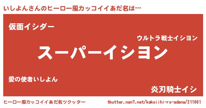 | 男性向けラノベタイトル風あだ名 | 『いしよんの憂鬱』 |