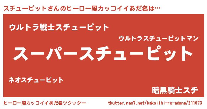 | 男性向けラノベタイトル風あだ名 | 『スチューピットの憂鬱』 |