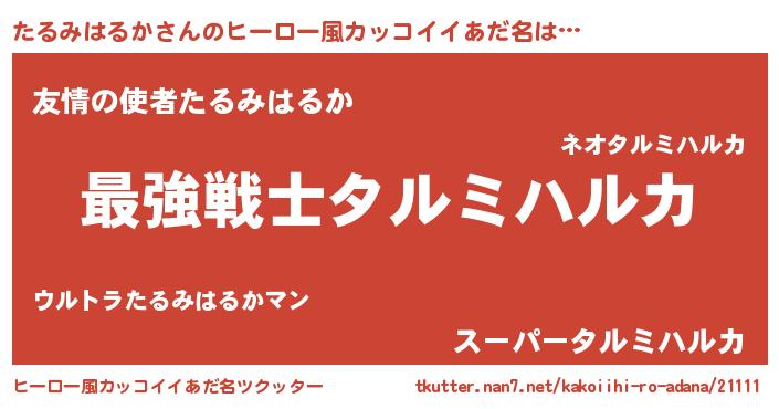 | 男性向けラノベタイトル風あだ名 | 『たるみはるか~年齢イコール彼女いない歴の魔法使い~』 |