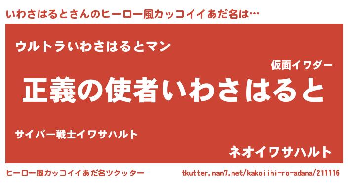 | 男性向けラノベタイトル風あだ名 | 『おまえをオタクにしてやるから、俺をいわさはるとにしてくれ! 』 |