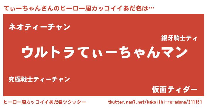 | 意味不明あだ名 | 『てぃーちゃんフォーエバー』 |