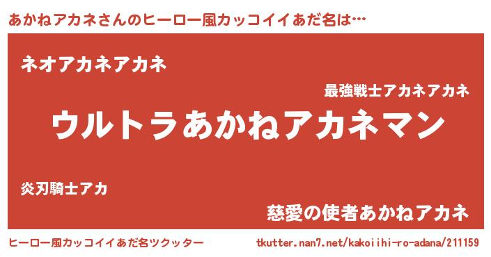 | ファンタジー風あだ名 | 『エターナルアカネアカネー』 |