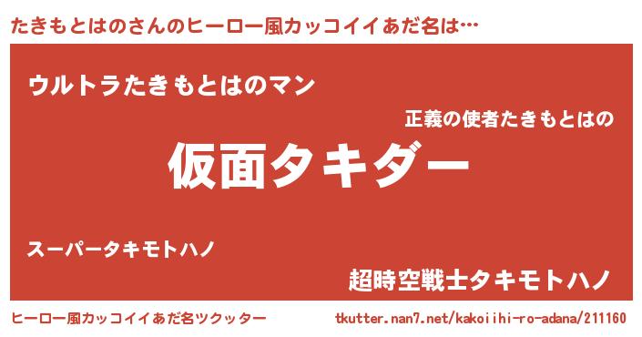 | 意味不明あだ名 | 『住所不定無職たきもとはの(56歳)』 |