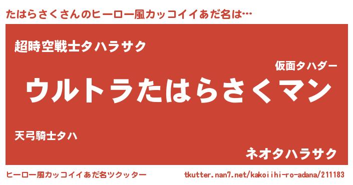 たはらさくさんのヒーロー風カッコイイあだ名をツクッター!