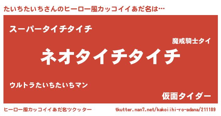| 男性向けラノベタイトル風あだ名 | 『たいちたいちという概念が存在しない退屈な世界 』 |