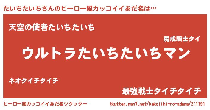 | 男性向けラノベタイトル風あだ名 | 『タイチタイチスレイヤー』 |