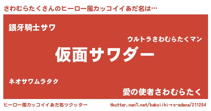 | 意味不明あだ名 | 『住所不定無職さわむらたく(77歳)』 |