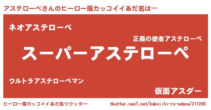 | ヘコむあだ名 | 『アスもー』『アステローペ(爆)』 |