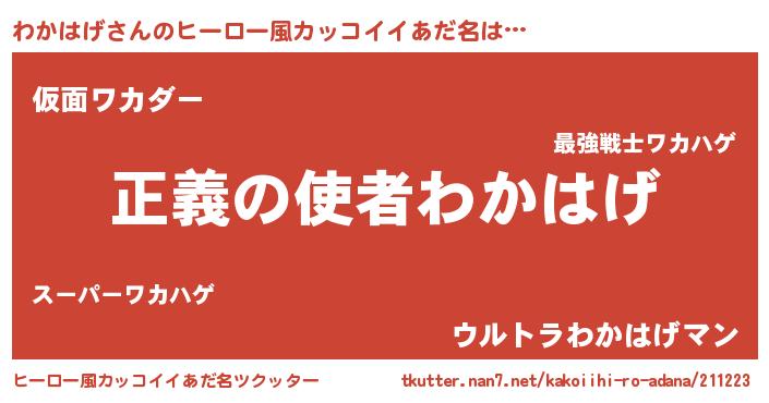 | 男性向けラノベタイトル風あだ名 | 『おまえをオタクにしてやるから、俺をわかはげにしてくれ! 』 |