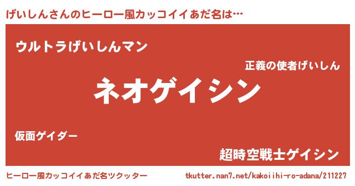 | ヘコむあだ名 | 『げいしん(笑)』『なまこ酢』 |