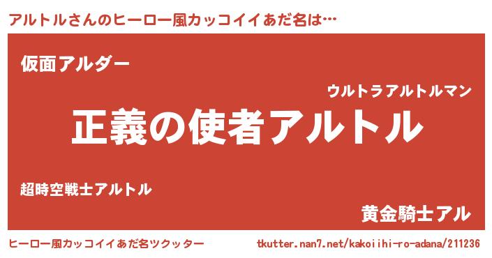 | 男性向けラノベタイトル風あだ名 | 『おまえをオタクにしてやるから、俺をアルトルにしてくれ! 』 |