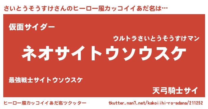 | 意味不明あだ名 | 『永久保存さいとうそうすけ』 |