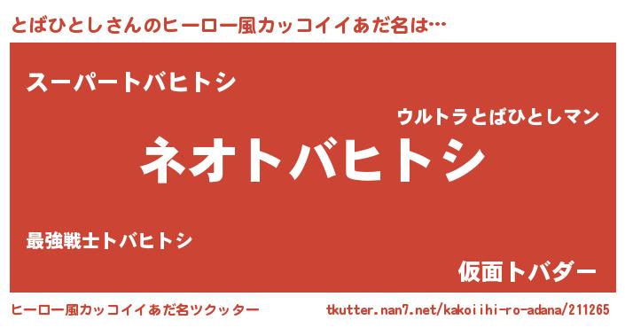 | ヘコむあだ名 | 『とばひとし(遠い目)』『とばにゅー』 |