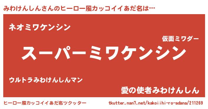 | 男性向けラノベタイトル風あだ名 | 『みわけんしんの憂鬱』 |